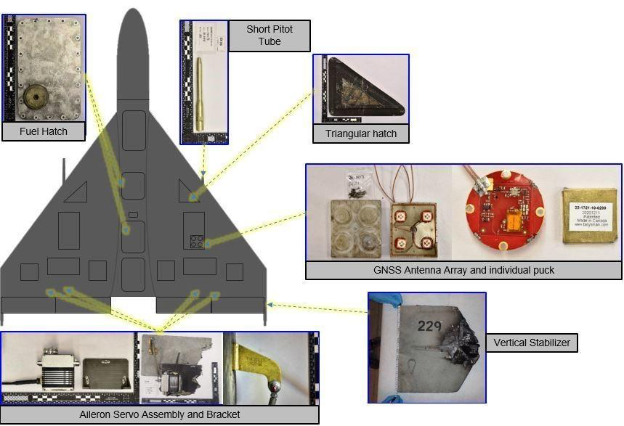 أجزاء من المسيّرة الإيرانية شاهد 136 بناءً على شظايا تم العثور عليها عام 2022 (US Naval Forces)