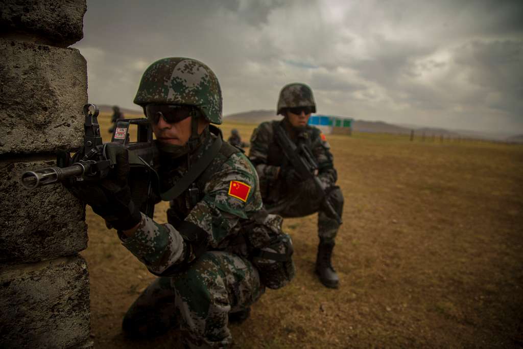 جنود من جيش التحرير الشعبي الصيني يشاركون في تدريبات الطوق والتفتيش ضمن تمرين ‘خان كويست 2015’ بمنغوليا.